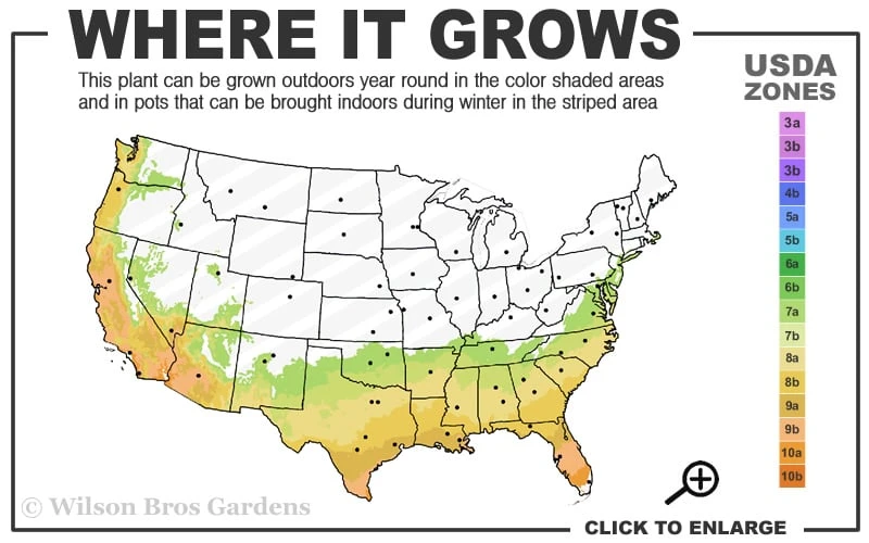 USDA Plant Hardiness Zones:ย 7a to 10a (6?)ย ย Find Your Zone