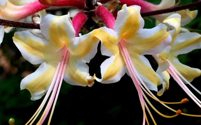 Millie Mac Native Azalea is very easy to grow in moist but well-drained, humus rich soil and dappled shade or morning sun with afternoon shade. Once established it is quite drought tolerant, requiring supplemental water only during prolonged periods of dry summer weather. Native azaleas are very low-maintenance, requiring little if any pruning. That said, occasionally we might prune a stray branch that is growing way outside the natural form of the plant, but not so much that it would spoil the natural form of this beautiful shrub.